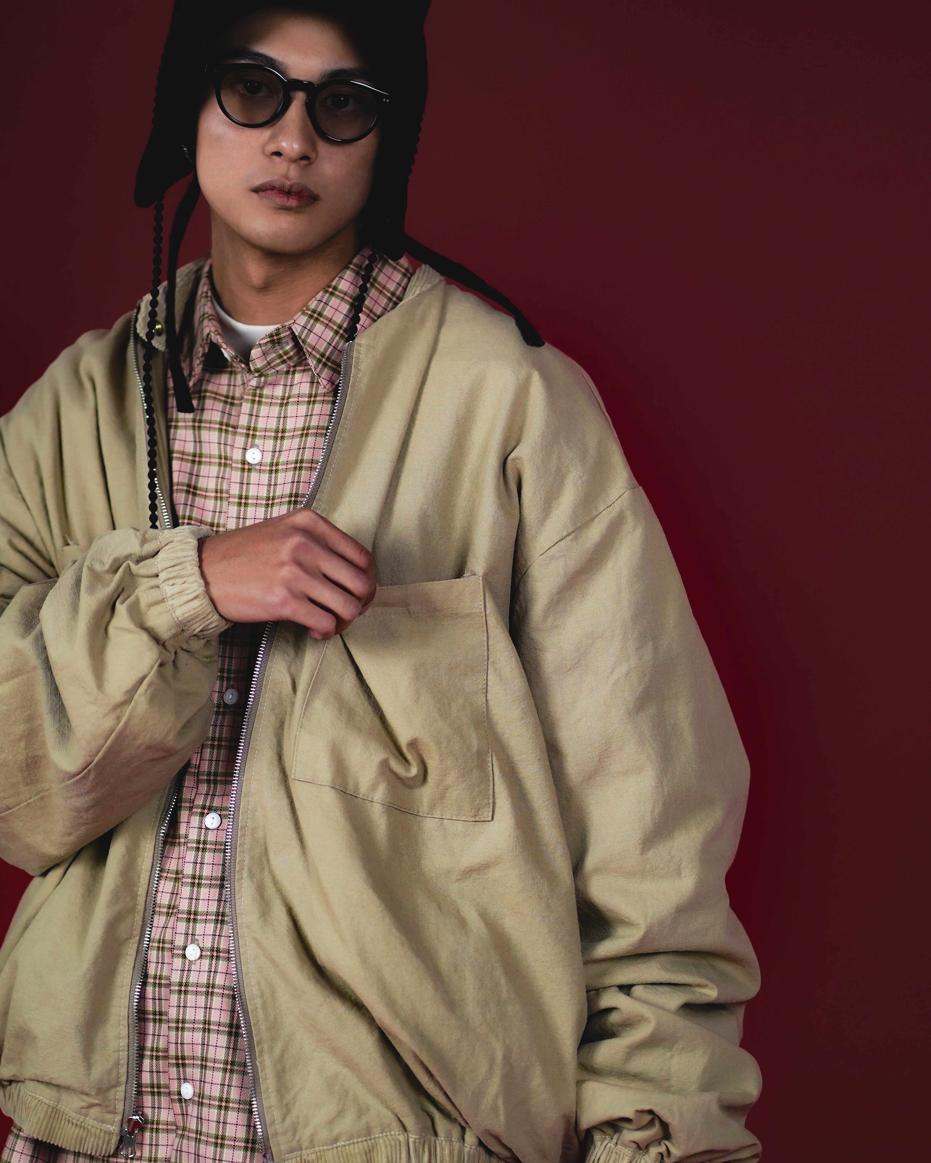 這是可以反穿變成一個素面的雙口袋工作夾克。