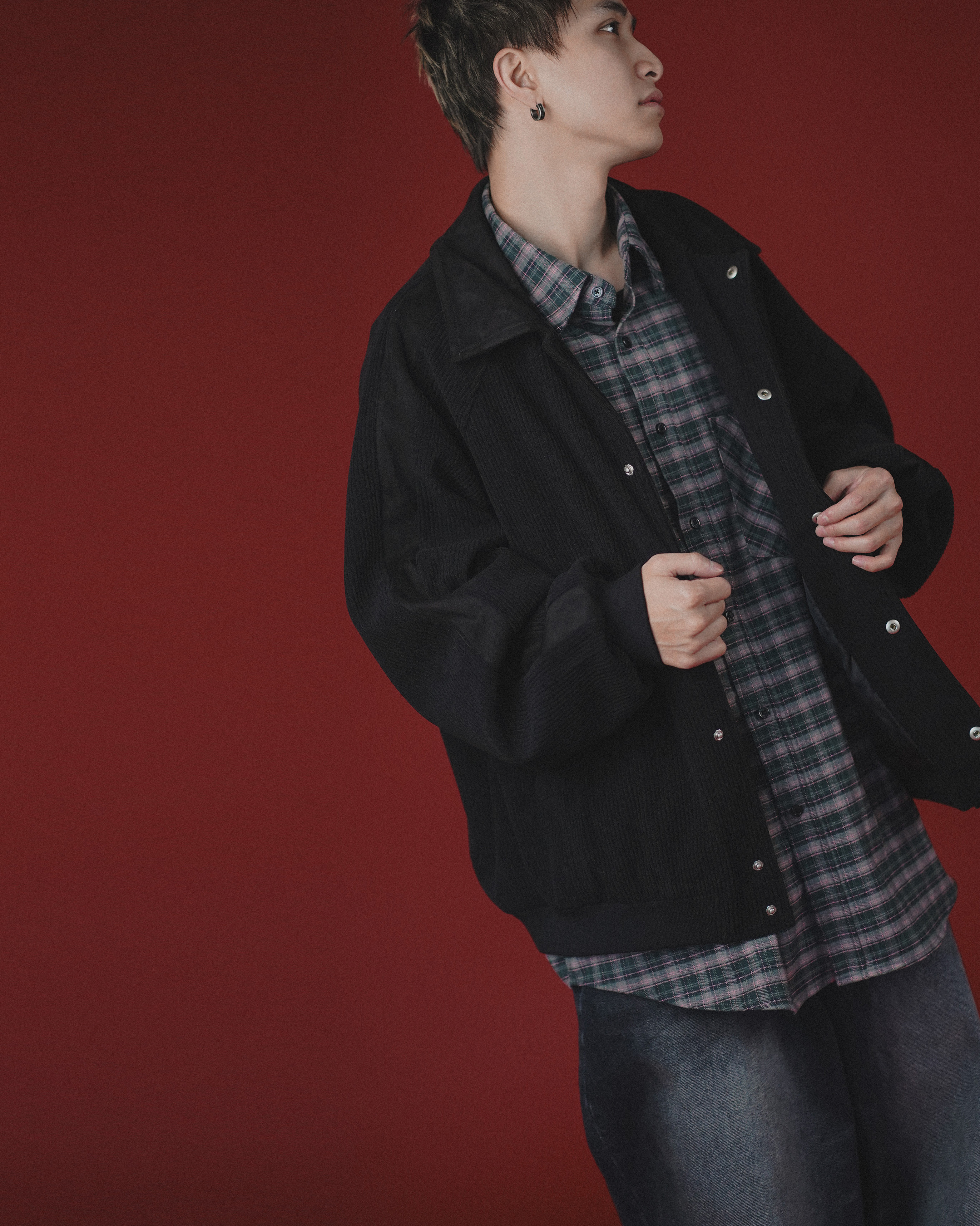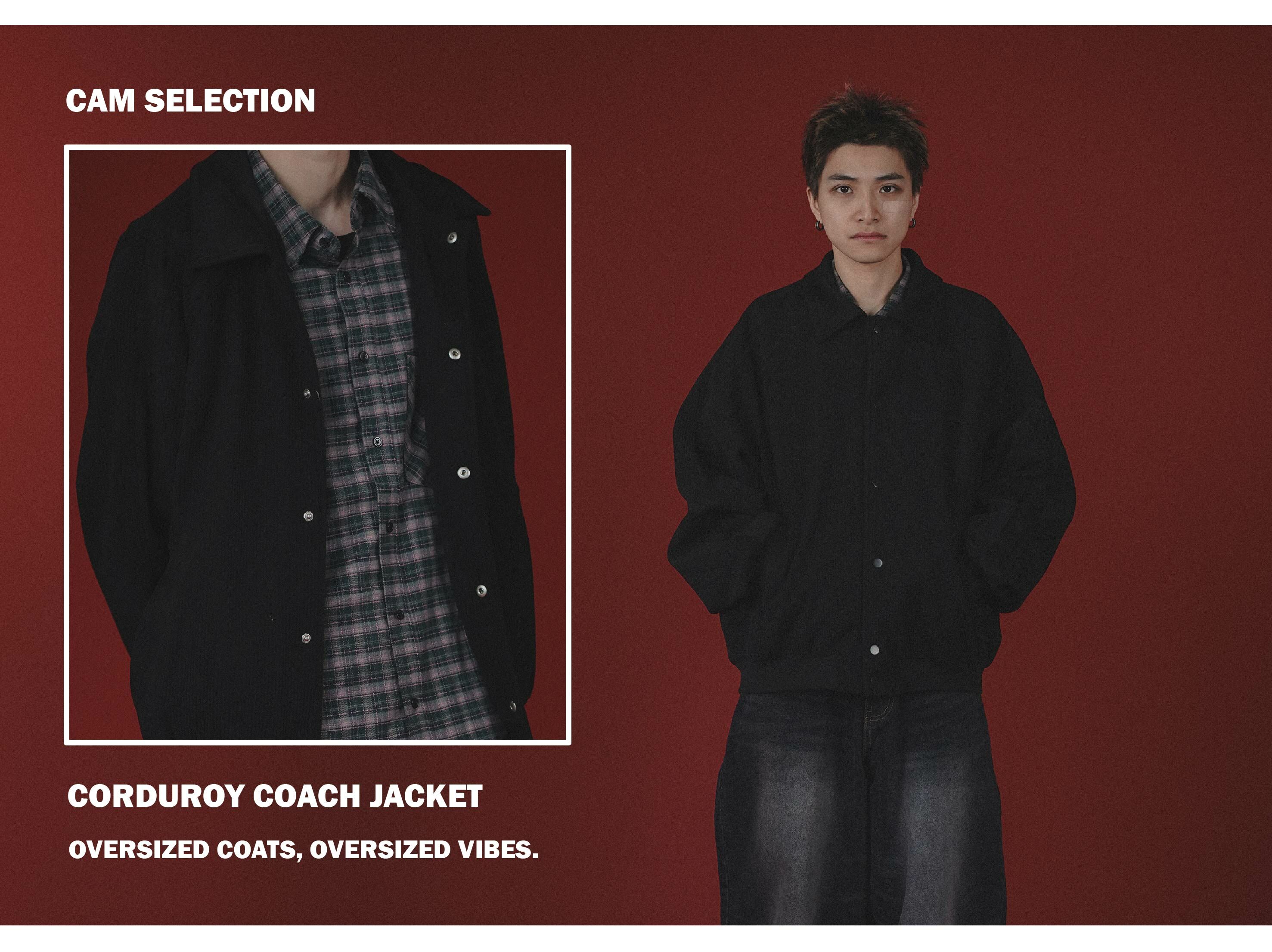 此次將常見的教練夾克用粗燈芯絨面料來呈現,