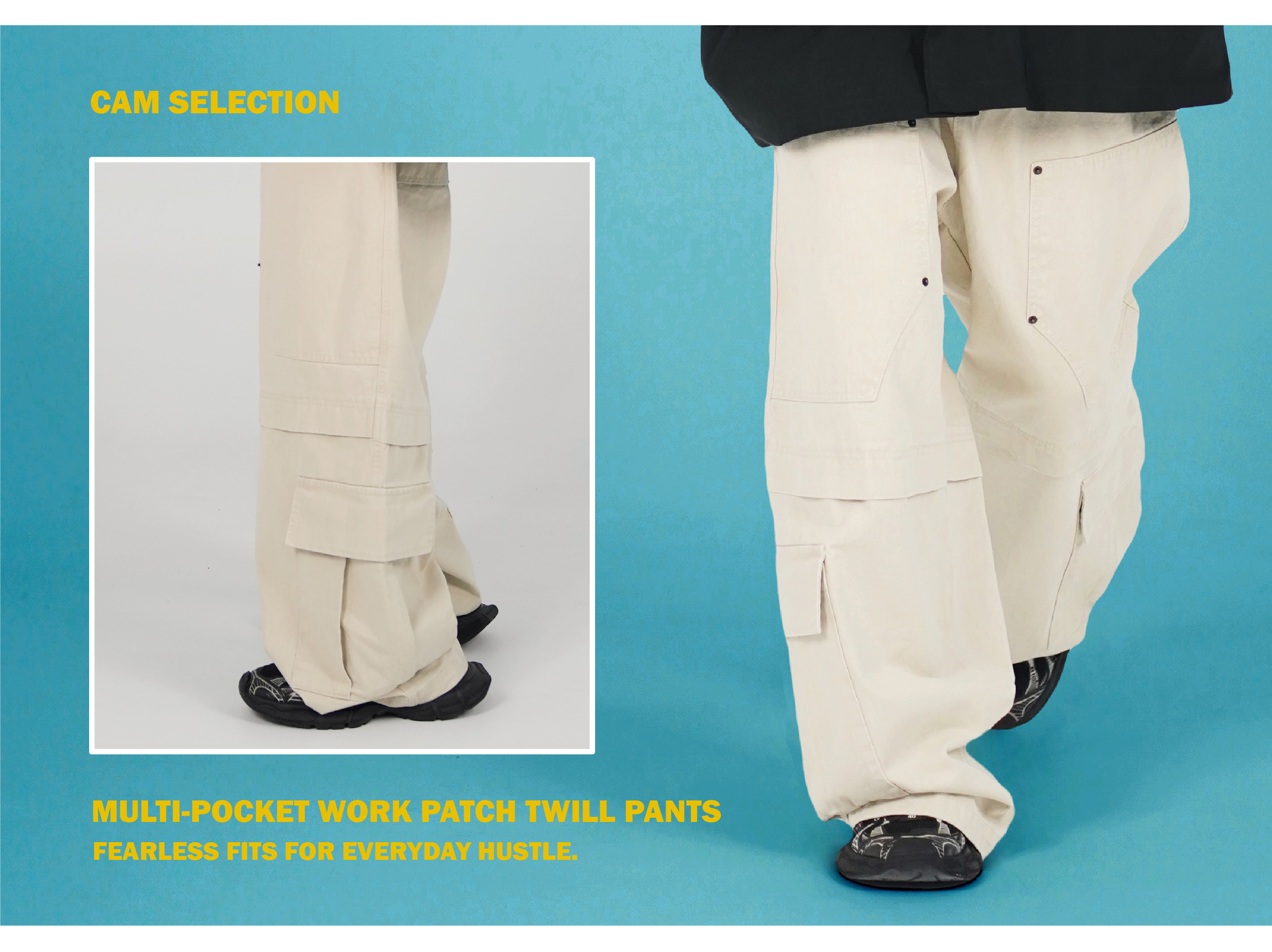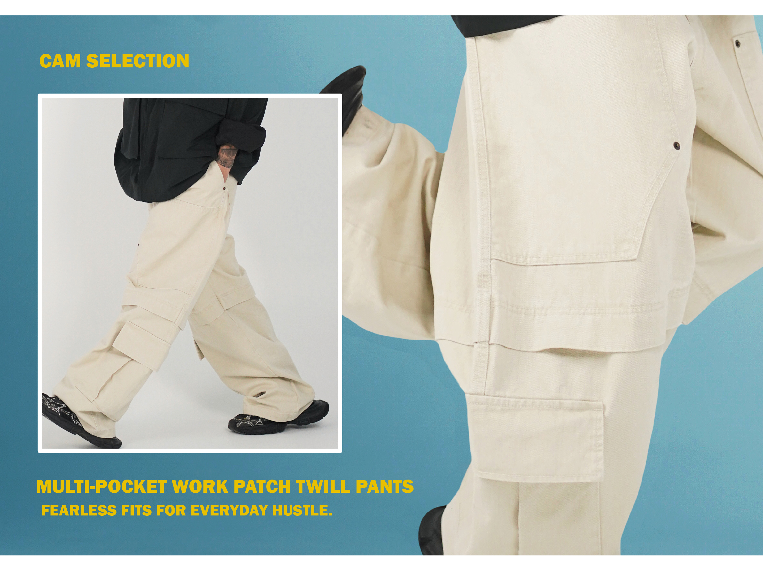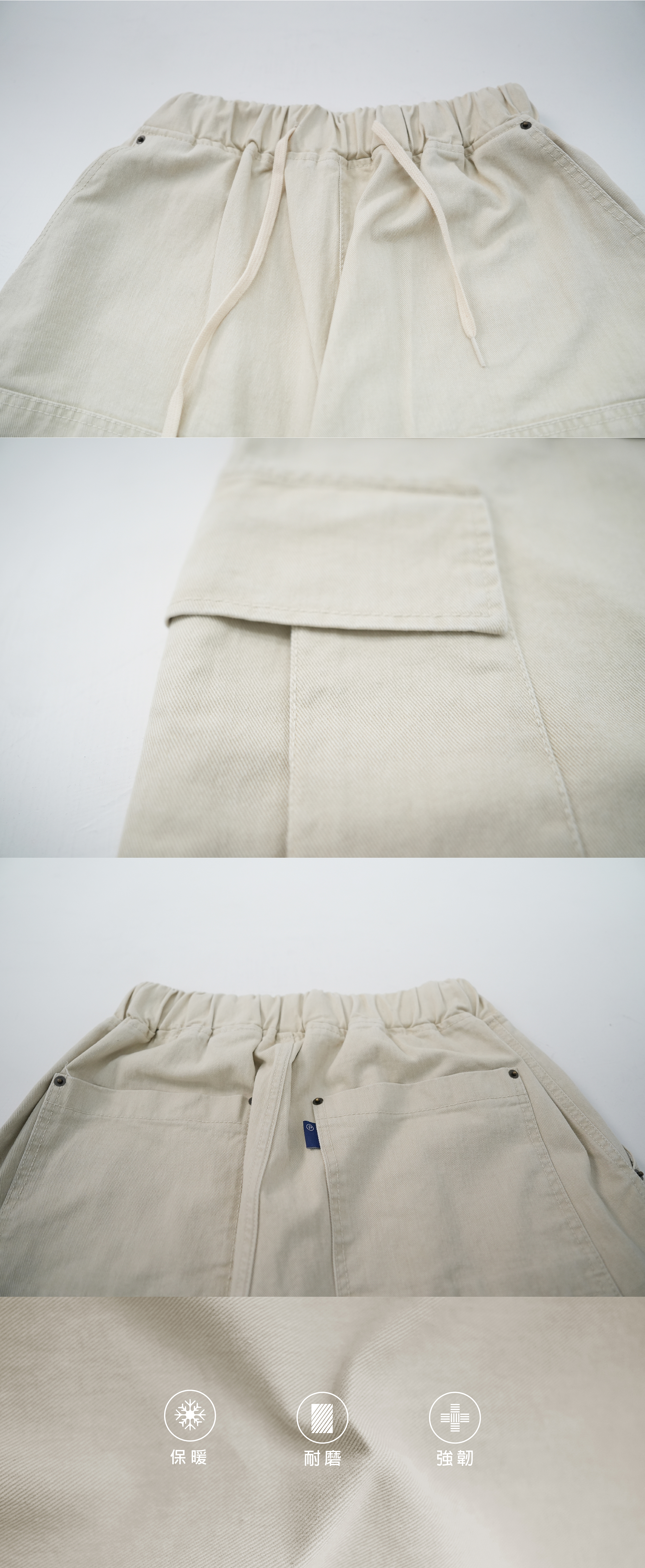 此件長褲使用了耐磨耐用的斜紋布,