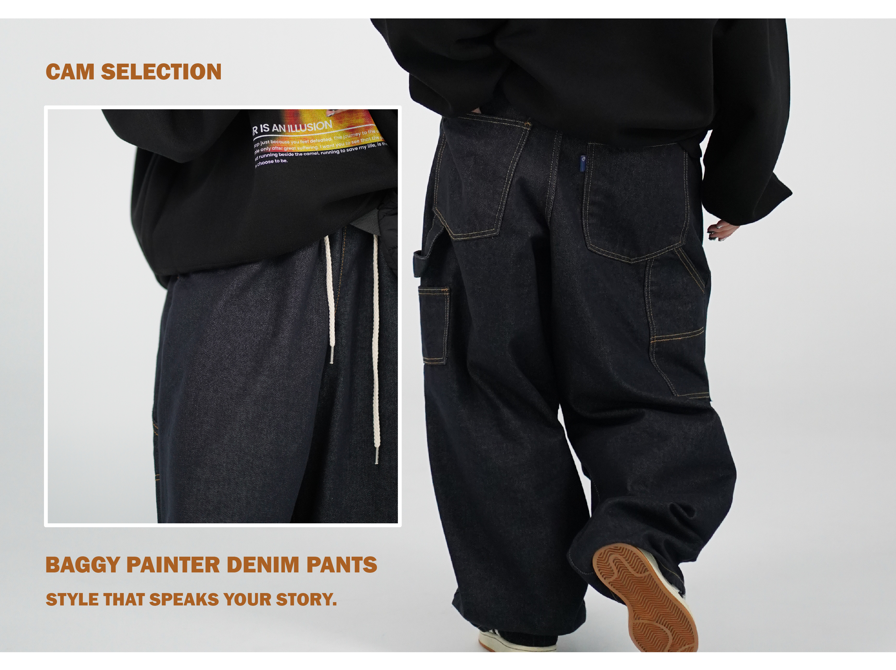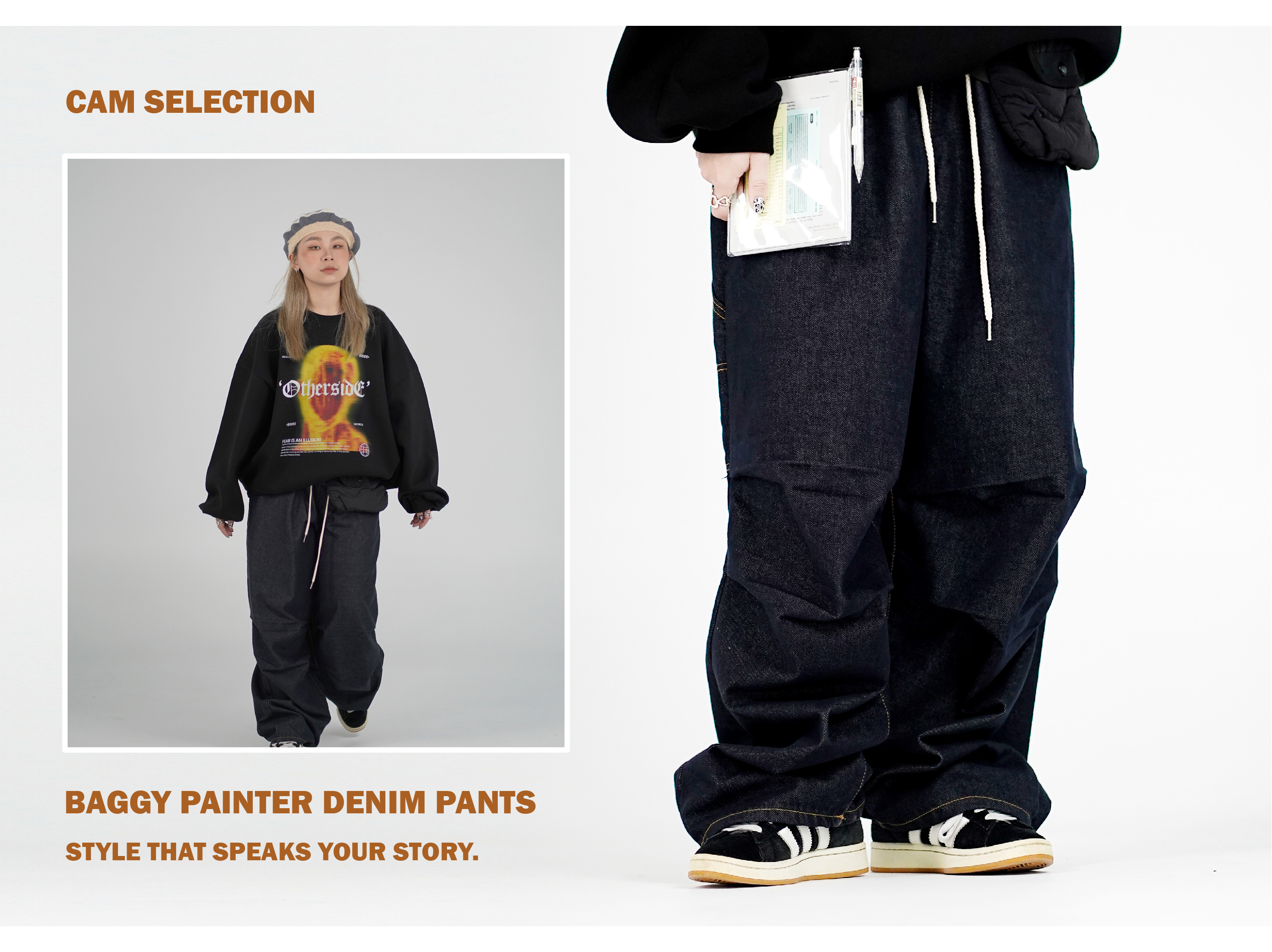 畫家褲的設計配上流行的膝蓋打摺線,