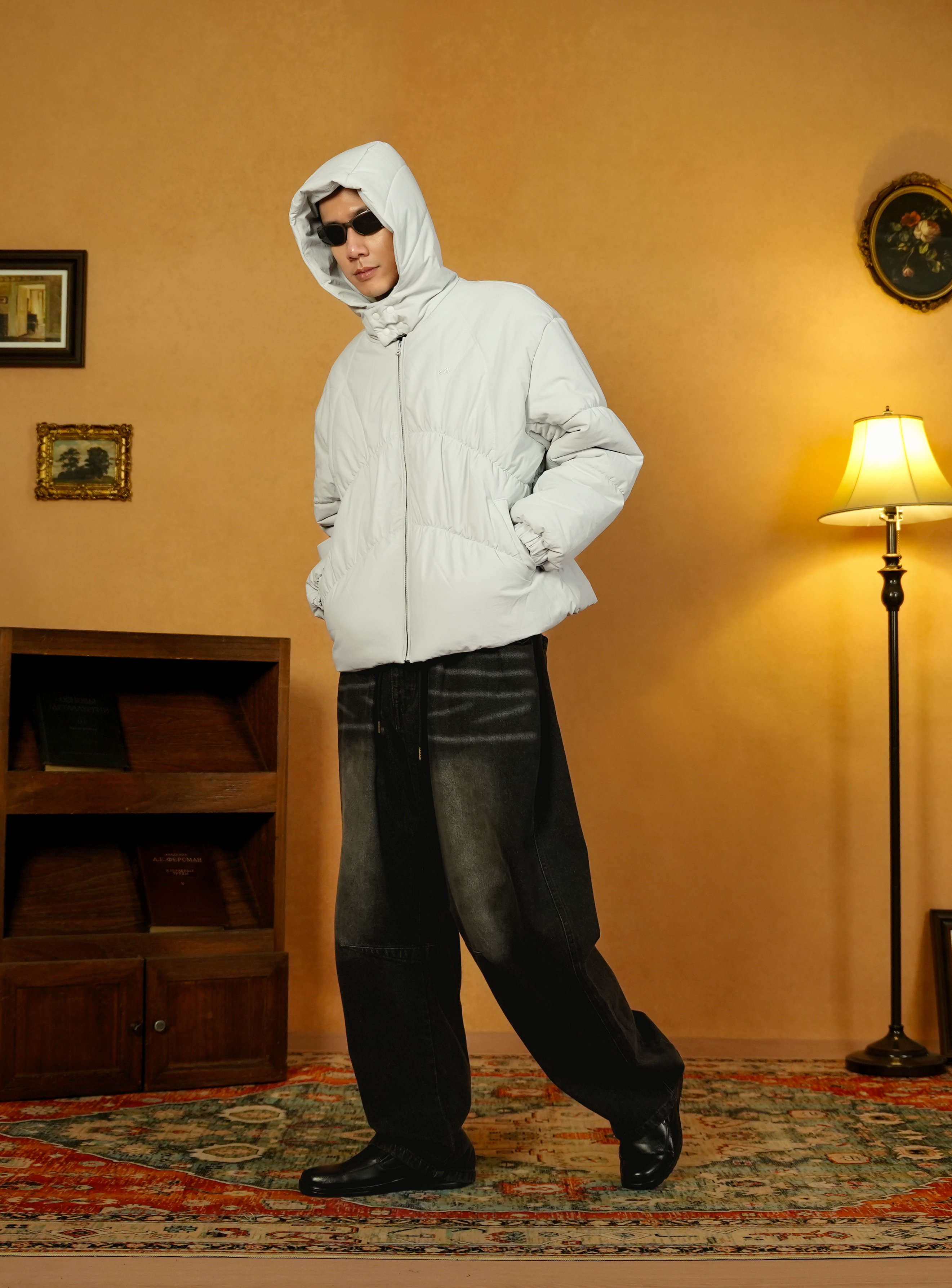 • Boxy-Cropped 版型邏輯:針對亞洲身型優化的寬短剪裁,能有效修正比例,即便在充棉量極高的狀態下,依然能維持挺拔、俐落的街頭廓形。