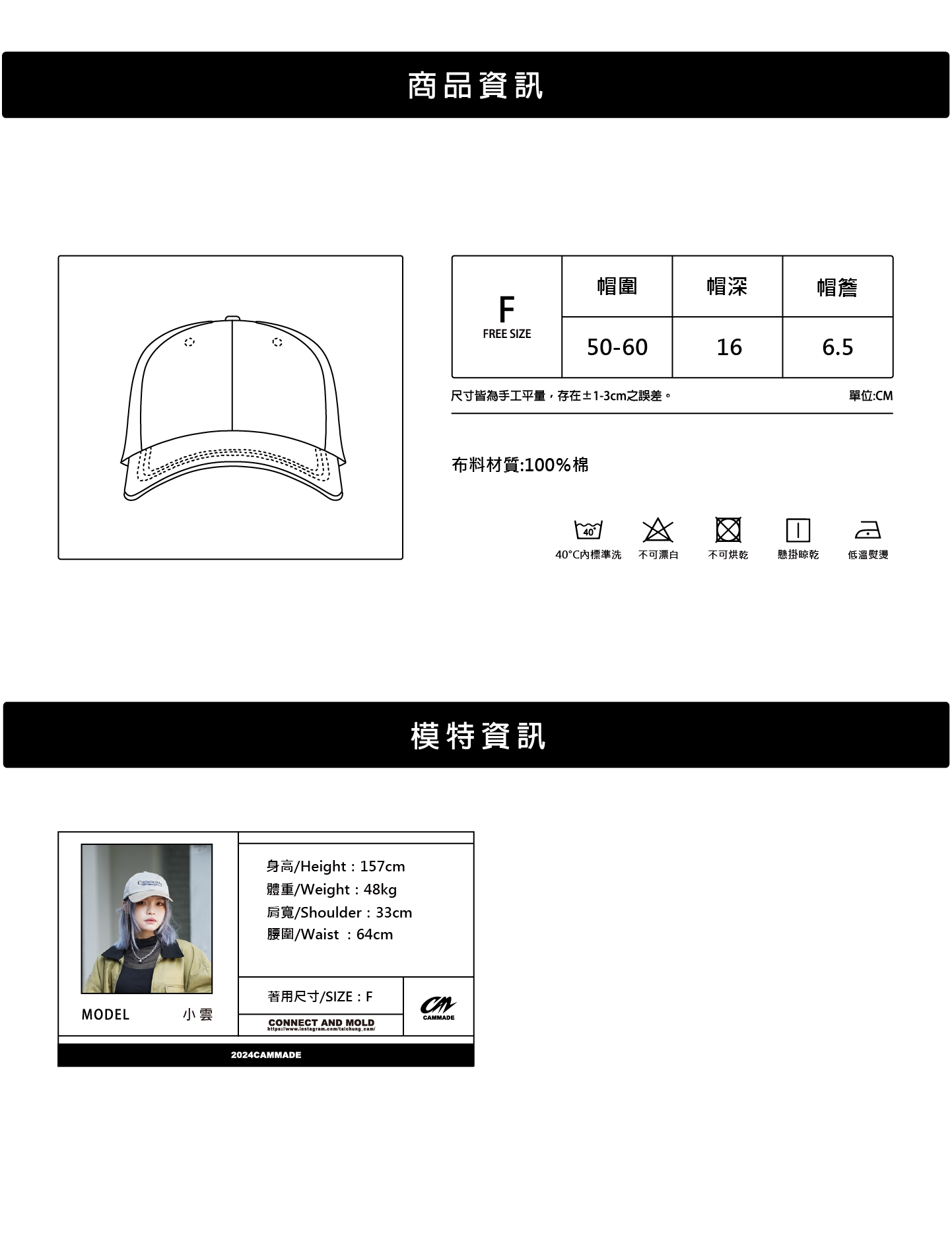 【CAM】 "Vintage Washed 2-tone Cap" 「復古水洗拼色六片帽」