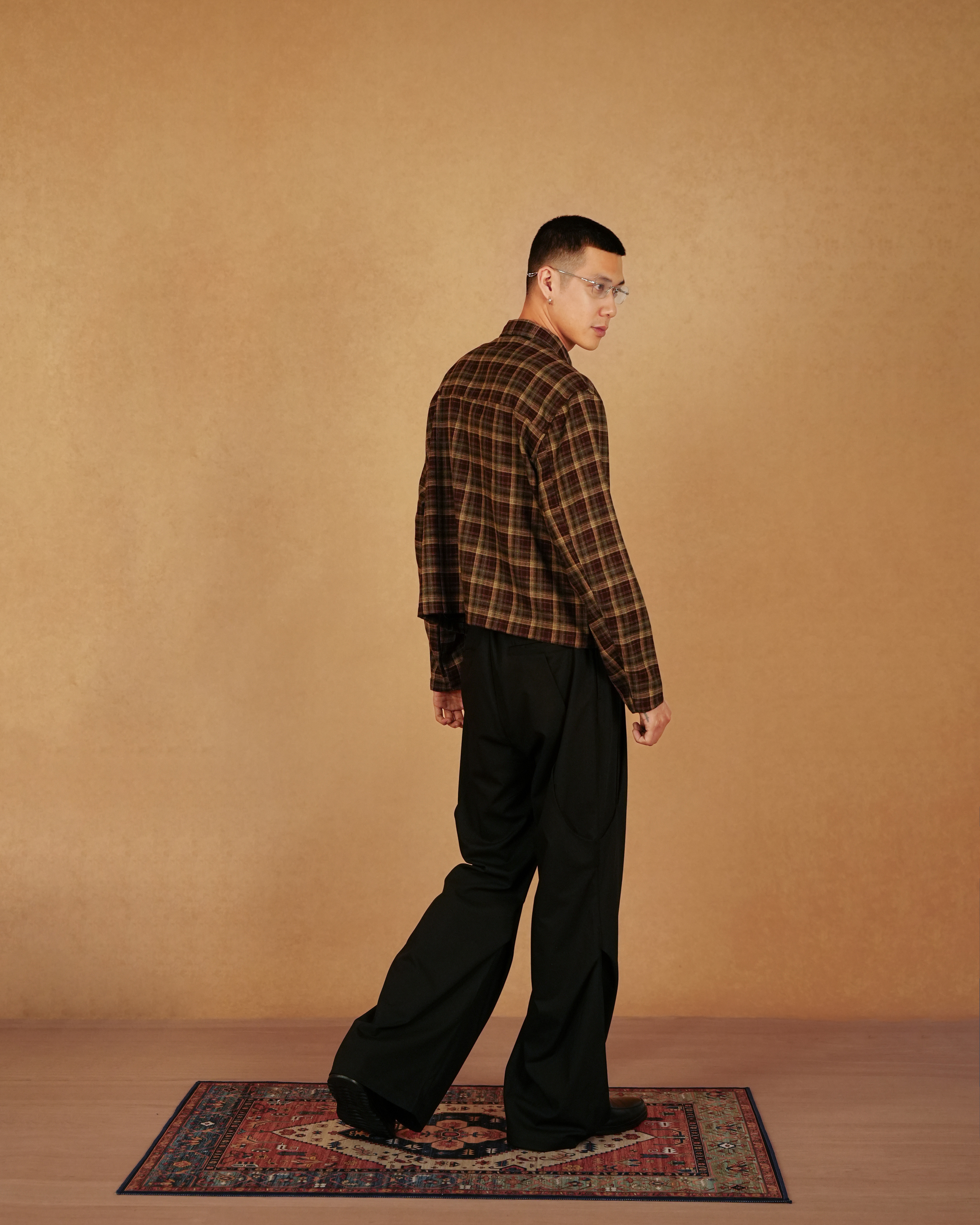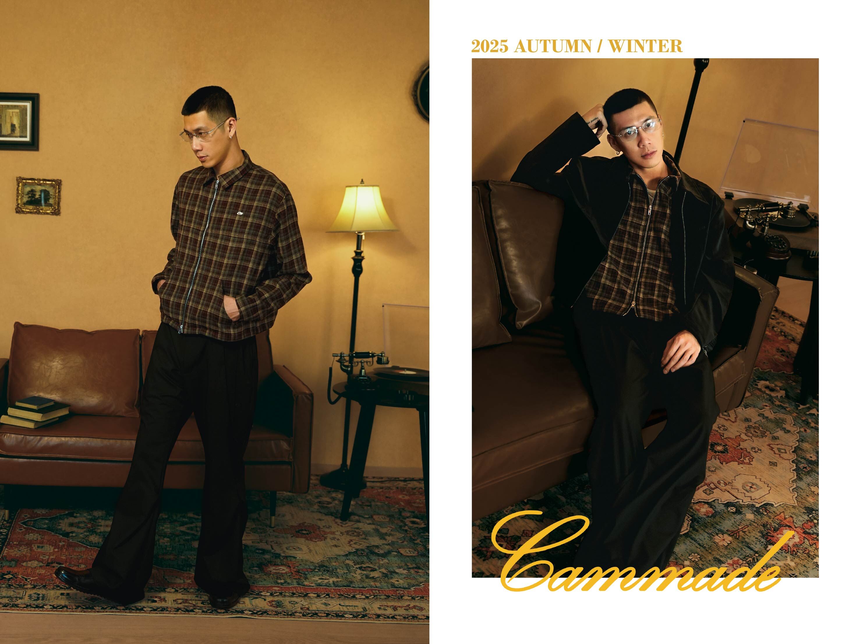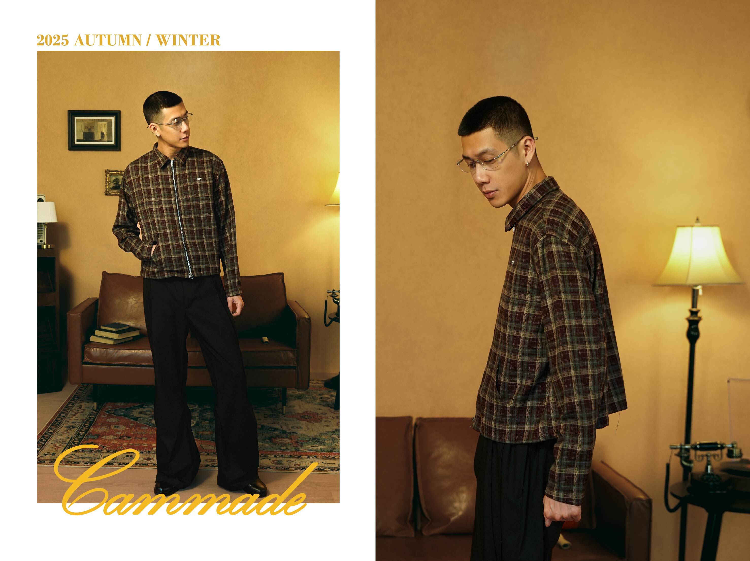 胸前低調的刺繡,則在溫暖的格紋織面中,