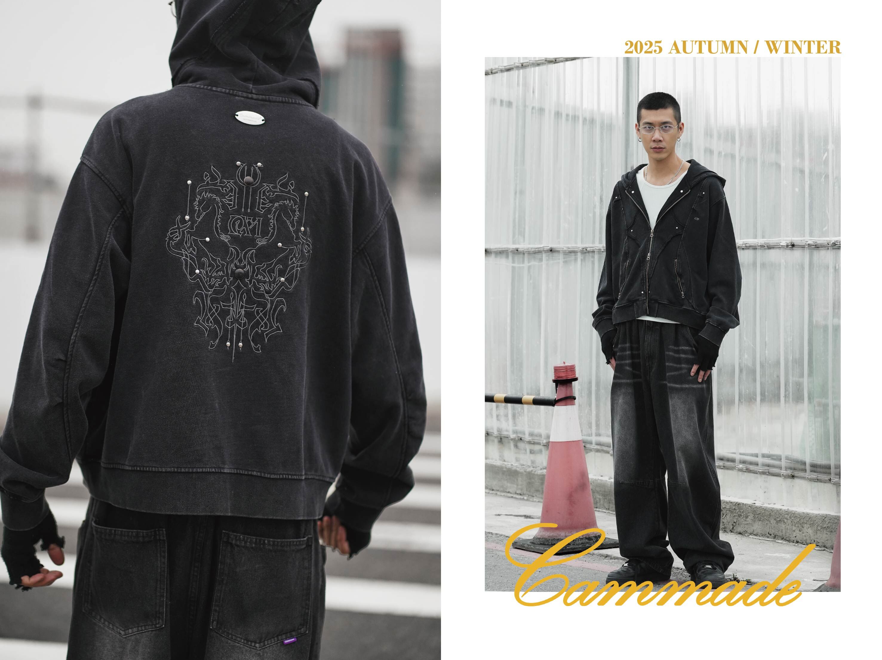 結合仿舊釘扣細節,將Biker的粗獷與現代街頭的精準揉合。