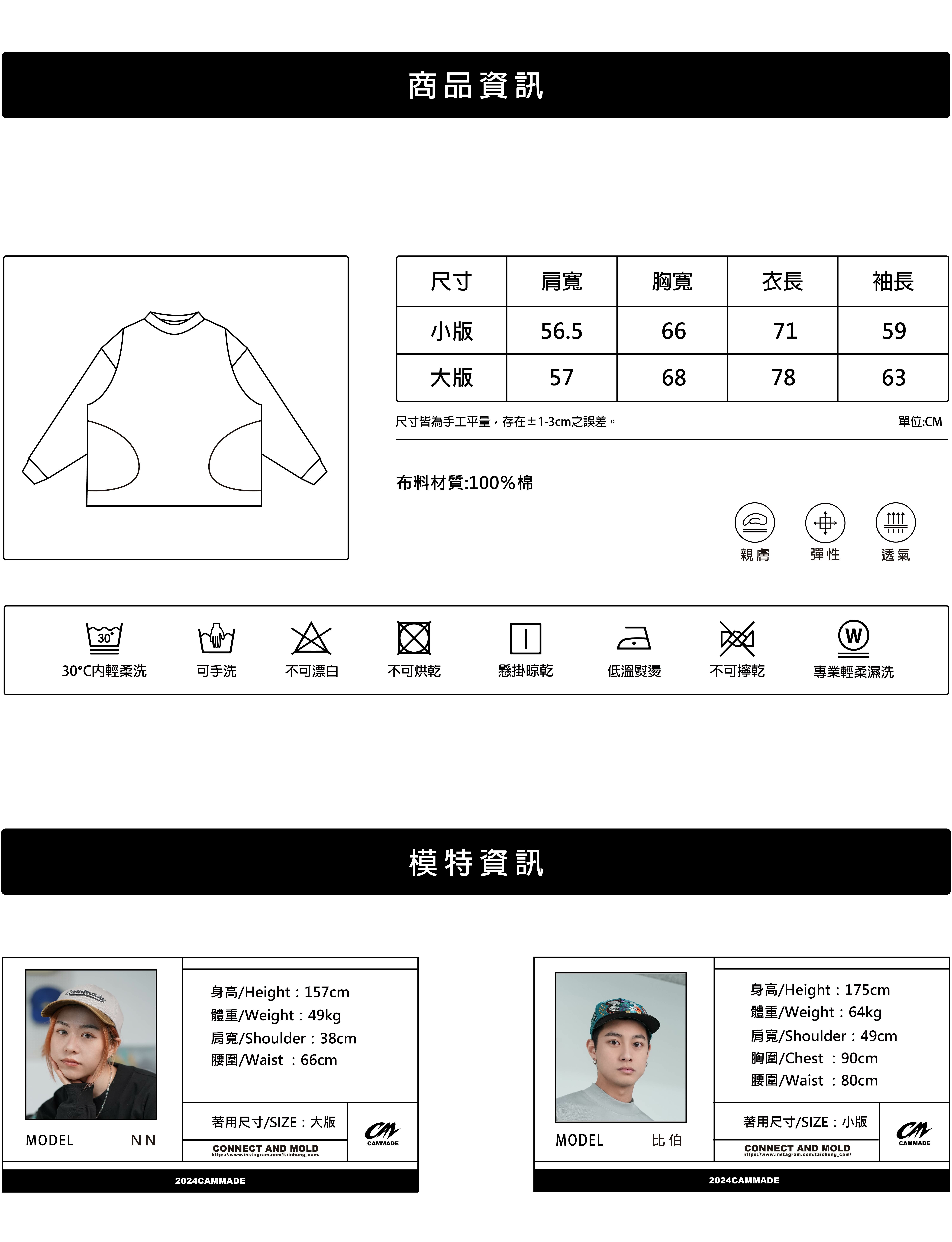 尺寸上有分大版以及小版(主要差異為衣長),