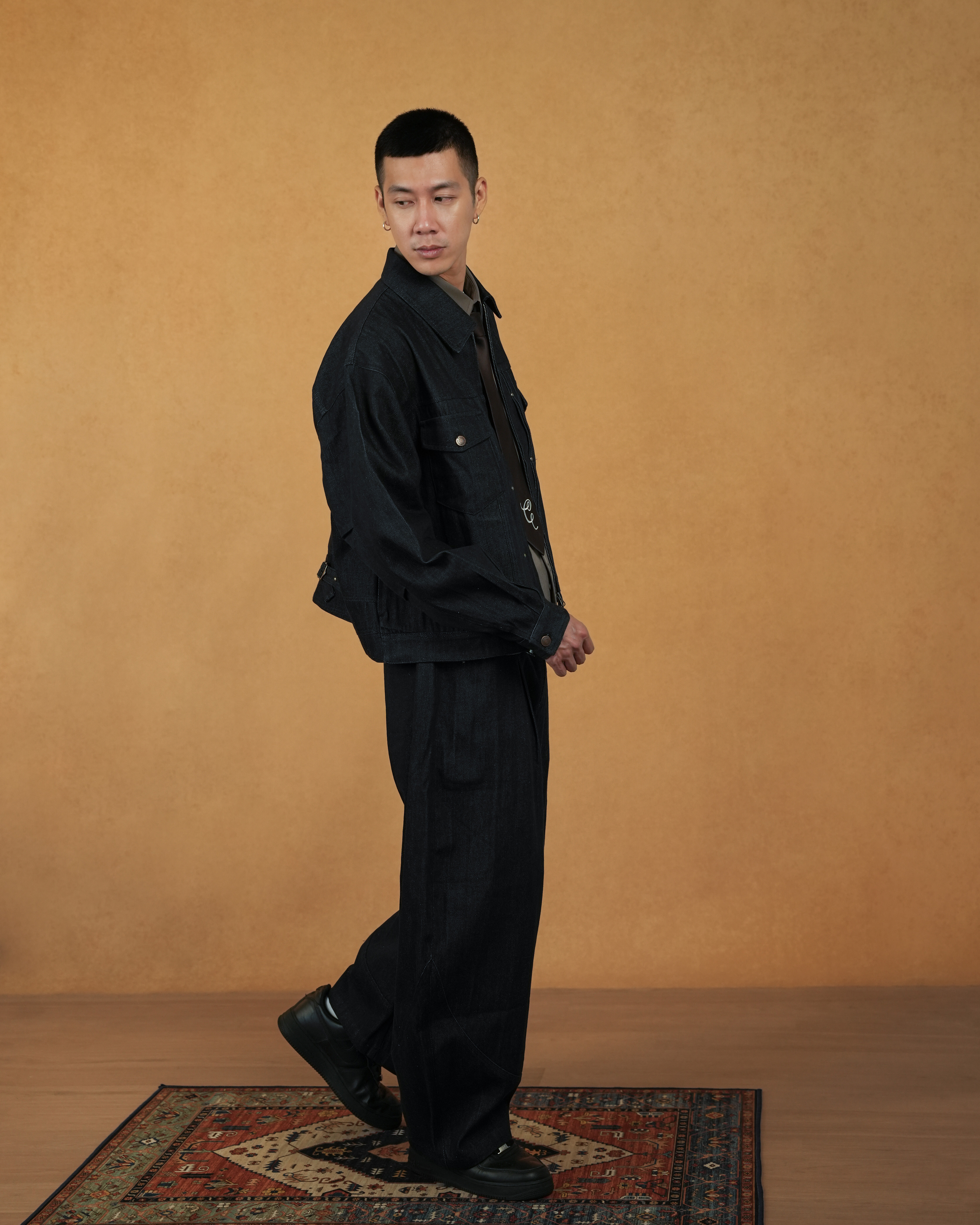 這款夾克以乾淨俐落的短寬版型為基底,以 14OZ 的厚薄適中面料打造。